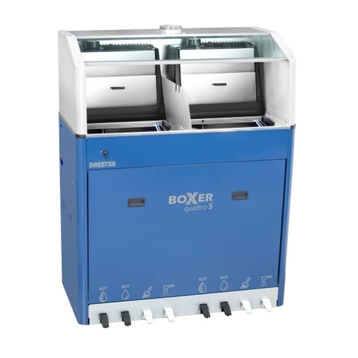 DRESTER Boxer DB44S Quattro è un pulitore per pistole a spruzzo progettato per l’uso con solventi, con 4 postazioni di lavoro indipendenti e utilizzabili in simultanea. Un’unica macchina per gestire sia la pulizia automatica sia il risciacquo manuale, ottimizzando tempi, consumi e qualità del risultato.